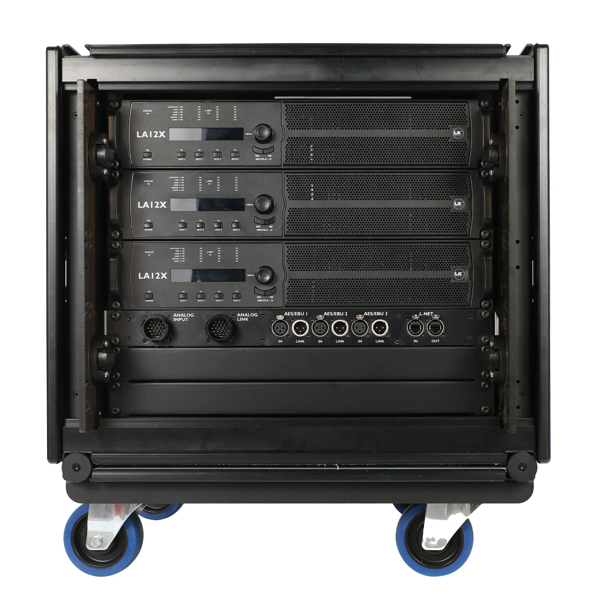 Engineered for durability, the LA-RAK II AVB features a shock-absorbing inner frame and protective elements, making it easy to handle and transport. With universal power connectors that support any voltage standard, the LA-RAK II AVB is perfect for global touring and simplifies logistics and cross-rental between L-Acoustics rental network agents.